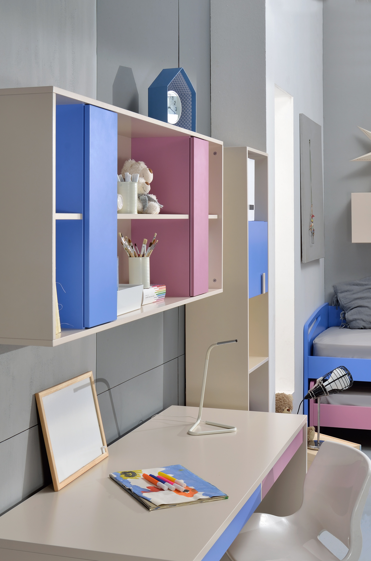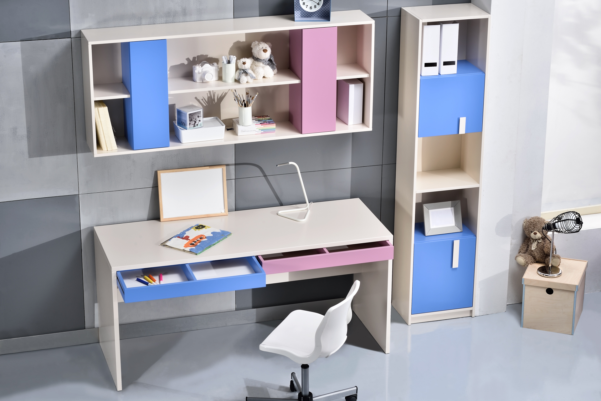 Η σύνθεση γραφείου αποτελείται απο γραφείο 1,60m με δυο παράλληλα συρτάρια για δυο παιδιά, εταζέρα ίδιας διάστασης, καθώς και βιβλιοθήκη 0,45m με πόρτες Energy.