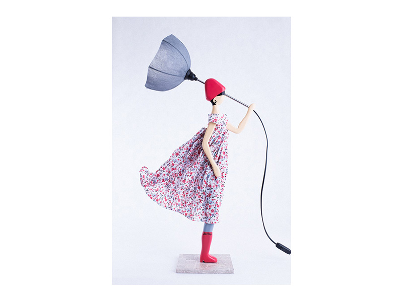 Χειροποίητο επιτραπέζιο φωτιστικό από ξύλο και ύφασμα.