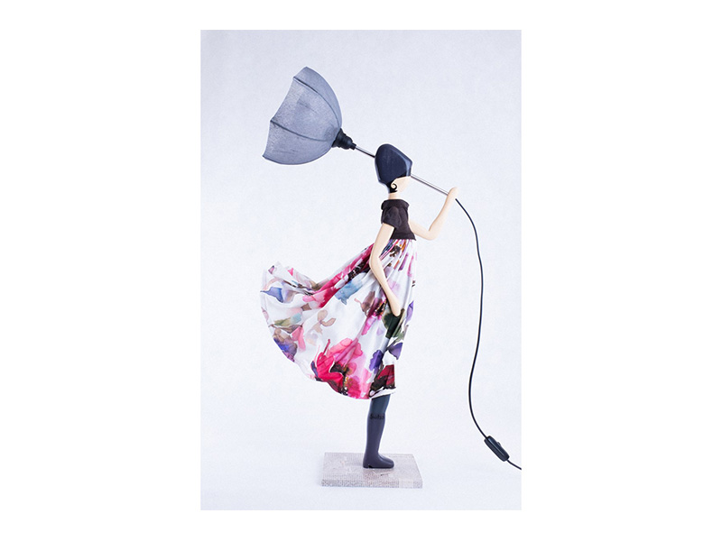 Χειροποίητο επιτραπέζιο φωτιστικό από ξύλο και ύφασμα.