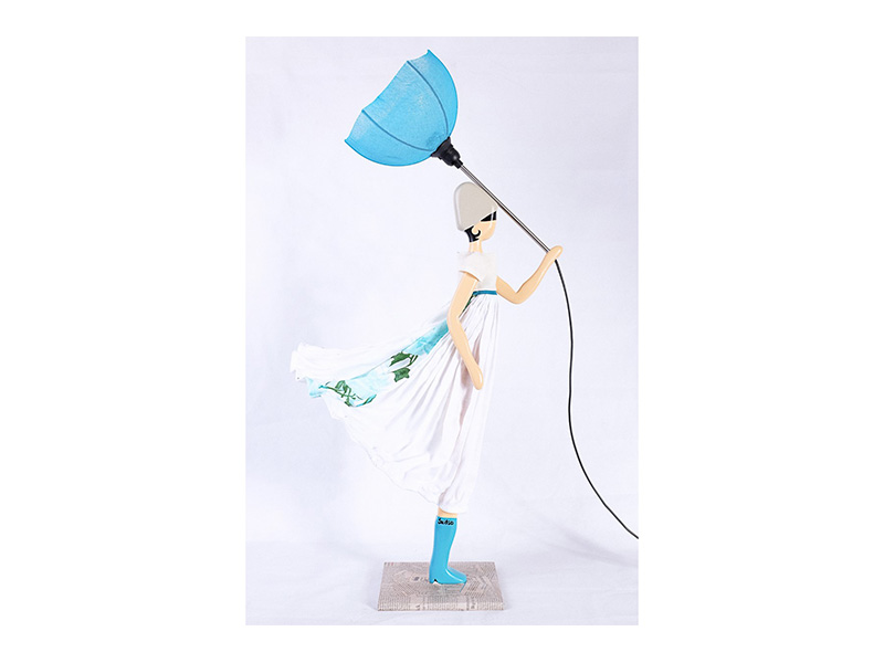 Χειροποίητο επιτραπέζιο φωτιστικό από ξύλο και ύφασμα.