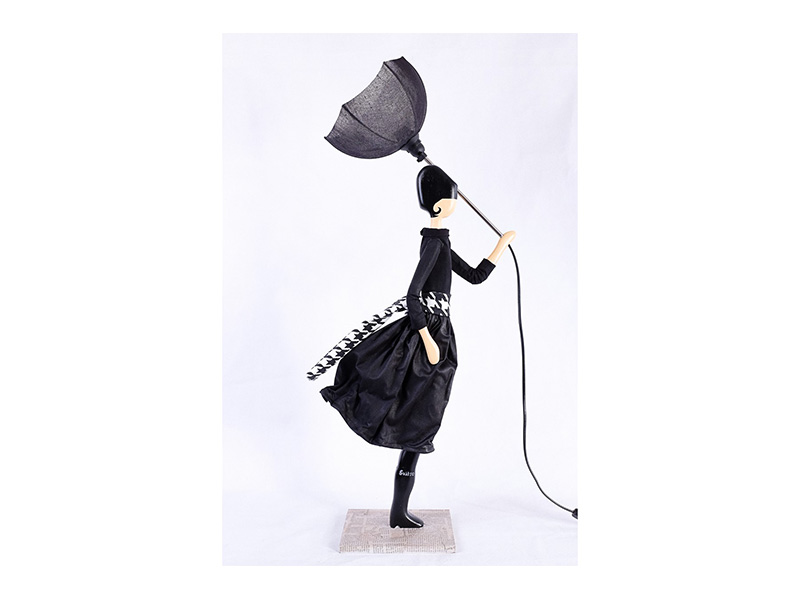 Χειροποίητο επιτραπέζιο φωτιστικό από ξύλο και ύφασμα.