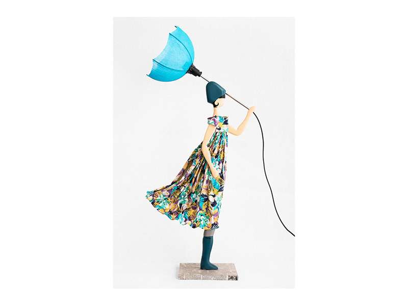 Χειροποίητο επιτραπέζιο φωτιστικό από ξύλο και ύφασμα.