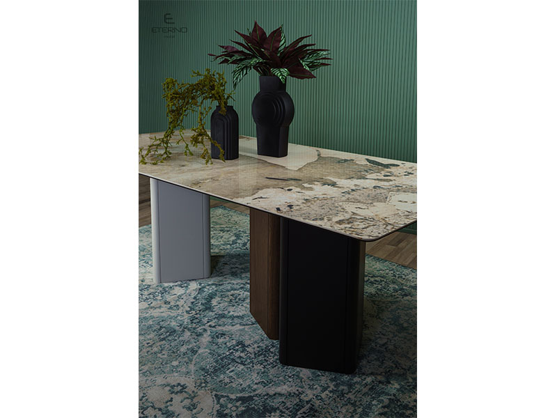 Η τραπεζαρία Lobby με την στιβαρή βάση και την αλληλουχία των χρωμάτων της, σε συνδυασμό με την κεραμική επιφάνεια, θα δώσουν μια άλλη πνοή στον χώρο σας.
