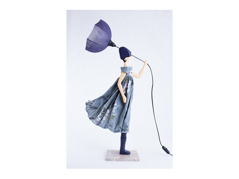 Χειροποίητο επιτραπέζιο φωτιστικό από ξύλο και ύφασμα.