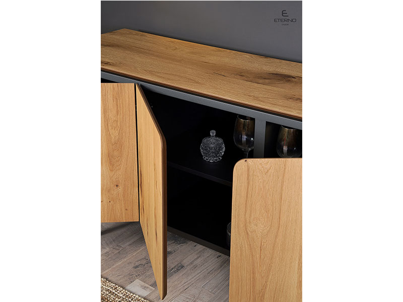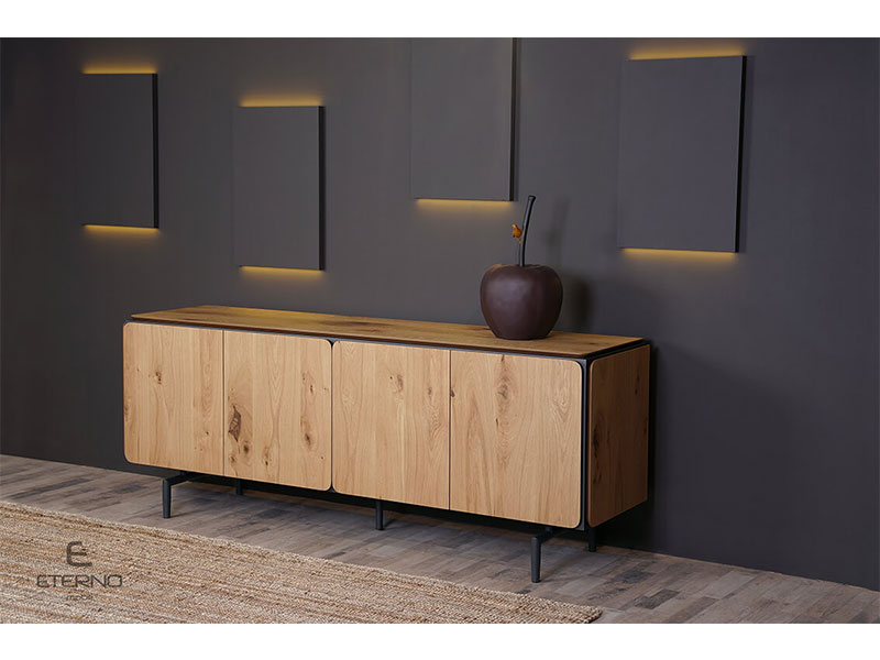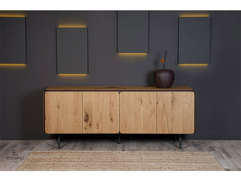 Μπουφές BALANCE με εντυπωσιακό design σε μίνιμαλ γραμμή .Κατασκευάζεται από ξύλο δρυς ρουστίκ με λάκα γκοφρέ σε συνδυασμό με μεταλλικά στοιχεία. Διασταση 200x50x78
