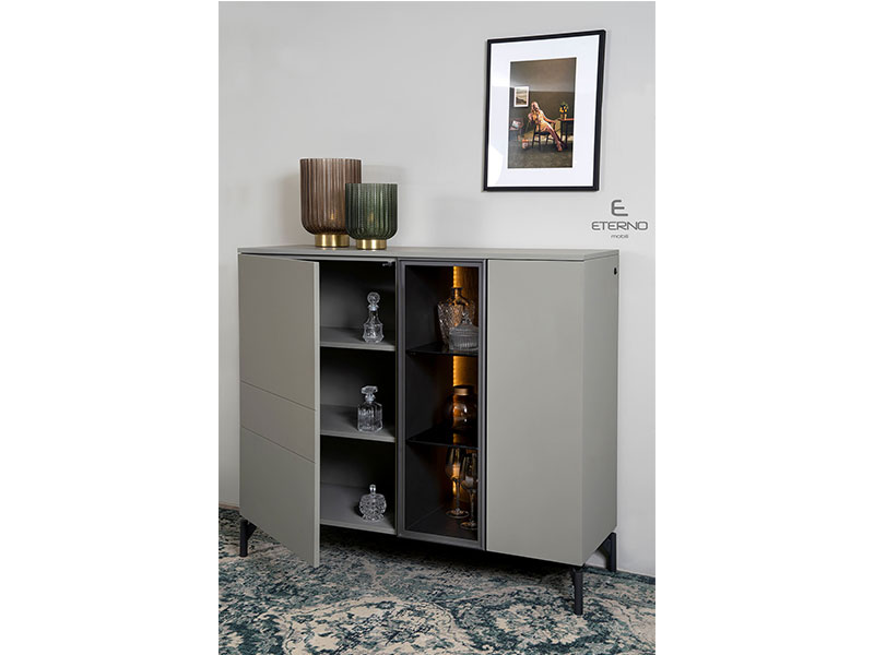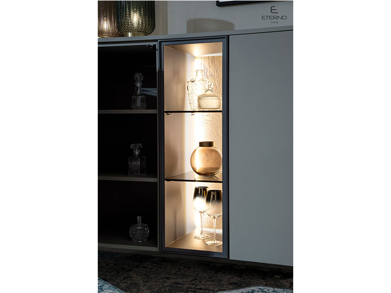 Το μπουφεδάκι feel με τον κρυφό φωτισμό μπορεί να χρησιμοποιηθεί σε οποιοδήποτε χώρο του σπιτιού, χαρίζοντας μας την κομψότητα και την λειτουργικότητα που θέλουμε. Διάσταση 120x40x105