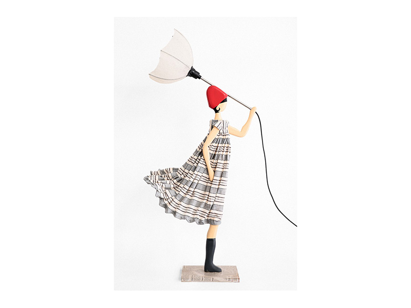 Χειροποίητο επιτραπέζιο φωτιστικό από ξύλο και ύφασμα.