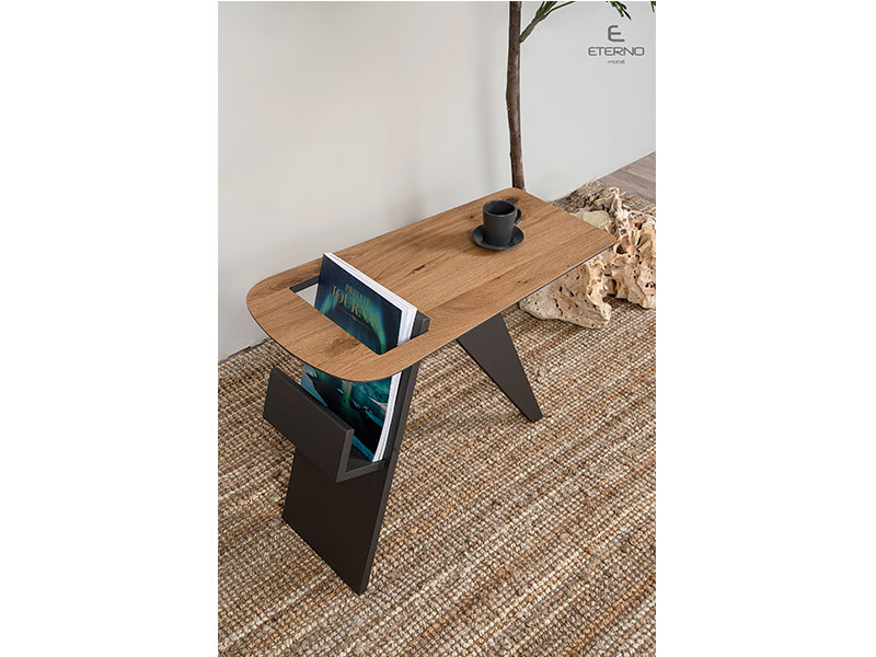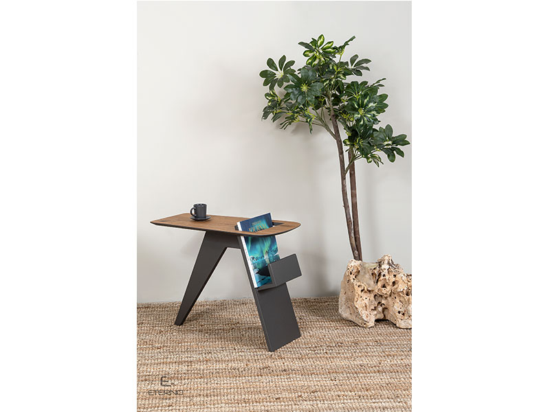 Το βοηθητικό τραπεζάκι Happy ακολουθεί μοντέρνο design και προσαρμόζεται στο χώρο ακολουθώντας τις ανάγκες της σύγχρονης ζωής. Ξύλο κατασκευής δρυς ρουστίκ σε συνδυασμό με λάκα γκοφρέ.