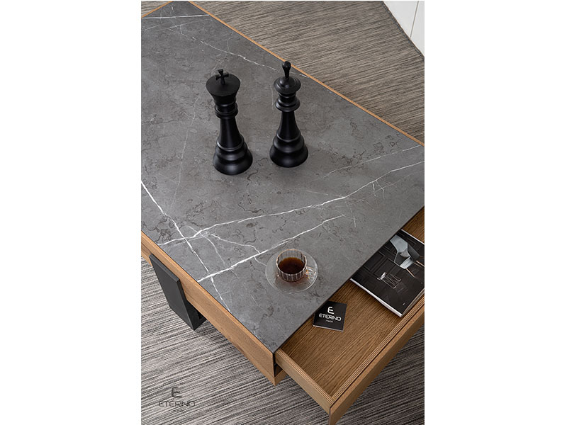 To τραπεζάκι Life ceramic διαθέτει στυλ και λειτουργικότητα.Συνδυάζει ξύλο ρουστικ με κεραμικό καπάκι και κρυφό συρτάρι ακολουθώντας τις μίνιμαλ γραμμές .