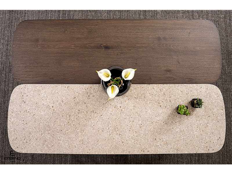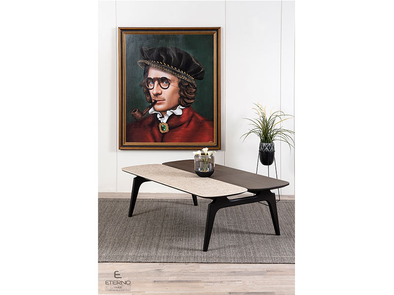 Mοντέρνο τραπεζάκι σαλονιού από ξύλο δρυς ρουστίκ σε συνδυασμό με κεραμική επιφάνεια και λάκα γκοφρέ. Δυνατότητα επιλογής διαστάσεων και αποχρώσεων ξύλου.