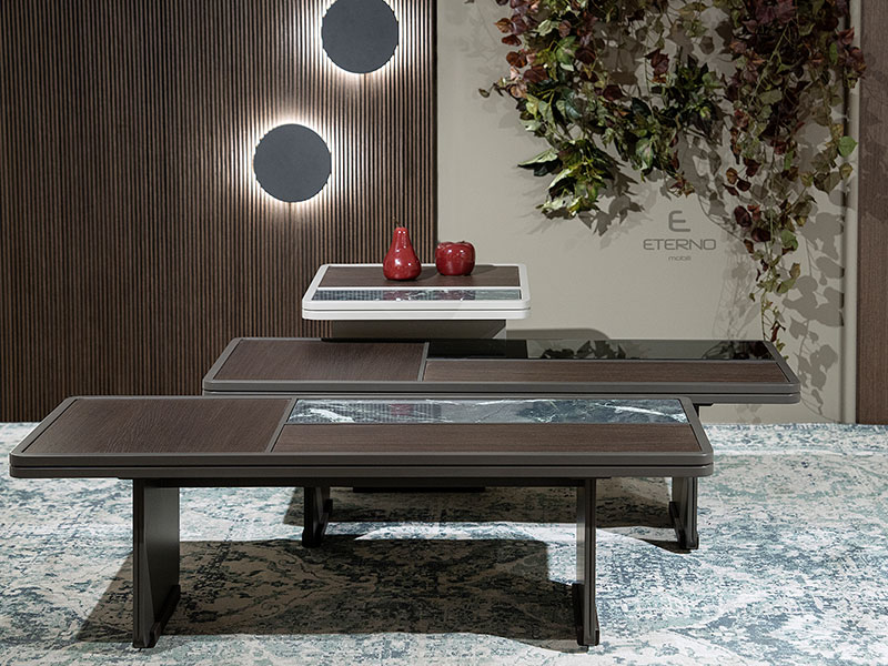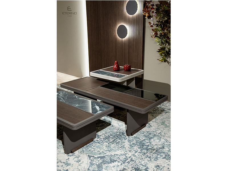 Η λιτότητα και η διαχρονικότητα του split αναδεικνύονται με τα τρία παραλληλόγραμμα τραπεζάκια που συνδυάζονται αρμονικά μεταξύ τους και σε συνδυασμό με την κεραμική επιφάνεια της θα κάνει την διαφορά στο σαλόνι σας.