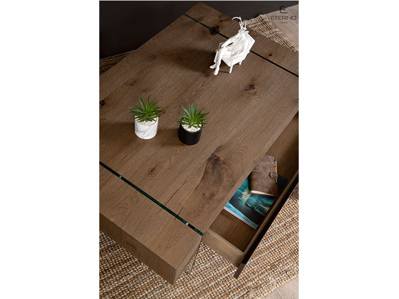 Το τραπεζάκι Think διαθέτει λιτό ύφος και σε συνδυασμό με τα γυάλινα πόδια δίνει ένα μοναδικό σχεδιασμό. Το κρυφό του συρτάρι κερδίζει ι τις εντυπώσεις. Ξύλο κατασκευής δρυς ρουστίκ σε συνδυασμό με γυάλινα πόδια.