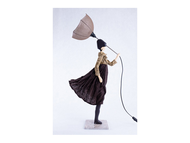 Χειροποίητο επιτραπέζιο φωτιστικό από ξύλο και ύφασμα.